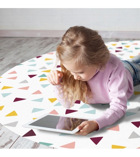 Añade color de forma fácil y divertida con nuestra alfombra vinílica Confetti. La tienes disponible en 9 medidas diferentes y sus triángulos de colores te invitarán a bailar sobre ella y pasártelo bien ¿Dónde la vas a colocar?