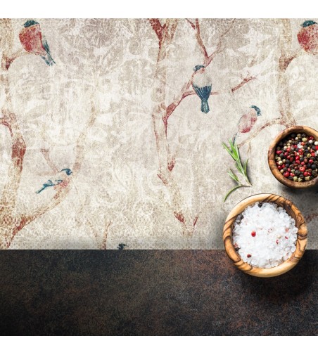 Decora el centro el centro de tu mesa con estos entrañables pajarillos. Sobre un degradado beige hemos dibujado unos adorables pájaros en tonalidades azules y rojas.
