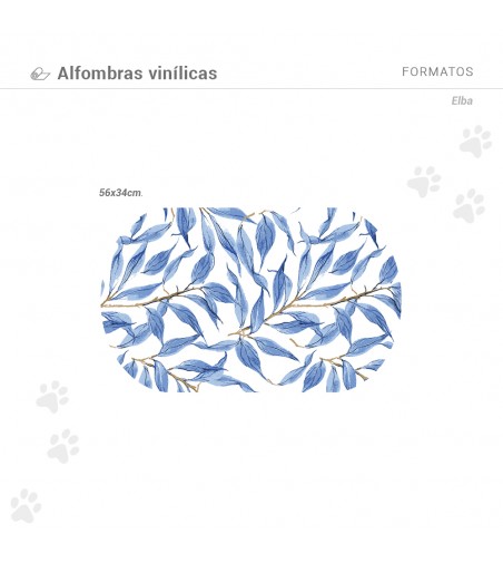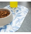 LA alfombra comedero ELBA de estampado botánico, va a darle un toque muy distinto a la zona donde tu perro y gato comen. Y es que sus bonitos trazos acuarelados con varias intensidades de azul, transformará el comedero de tu mascota en un abrir y cerrar de ojos.