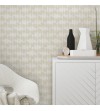 El papel pintado Shibori simula un tejido teñido de forma natural, creando formas irregulares que se unen y se separan en una selección de tonos suave y delicada.
