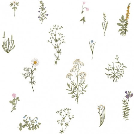 Un fondo blanco sobre el que se dibujan unos dibujos de románticos ramilletes de flores silvestres.Marca: Motif