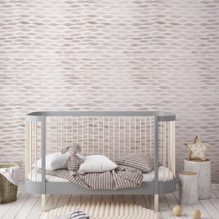 Un fondo blanco sobre el que se dibujan líneas irregulares de acuarela rosa pastel. Algo sencillo pero a la vez elegante, único y que transformará tu pared.