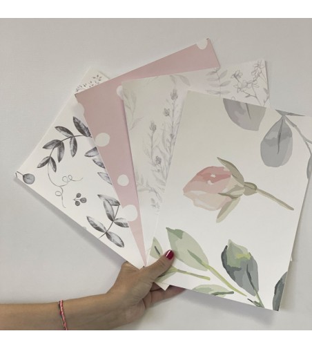 Un fondo blanco sobre el que se dibujan unos dibujos de románticos ramilletes de flores silvestres.Marca: Motif