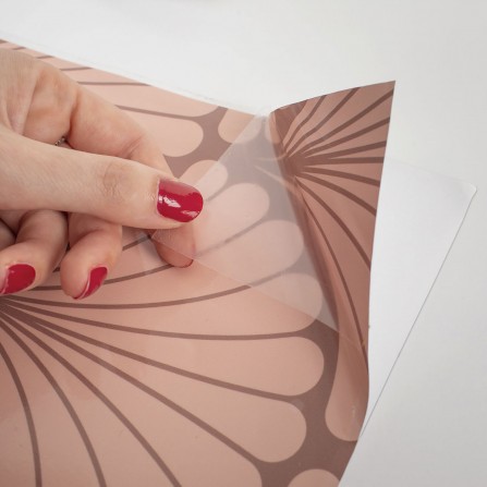 Una muestra de vinilo para muebles y paredes en A4 (21 x 29,7 cm) de uno de nuestros diseños escogidos al azar, para poder comprobar su adhesión en la superficie que escojas, su fácil colocación, su, su acabado y su definición.