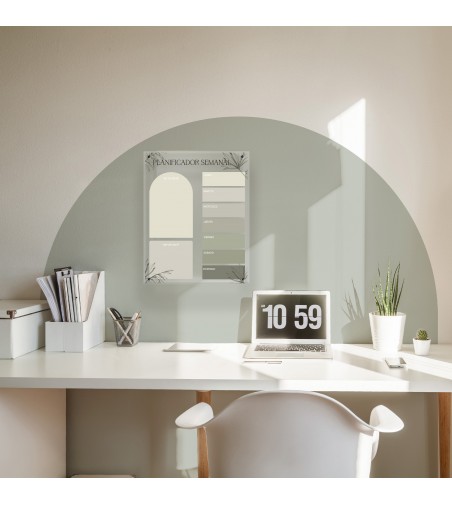 La gama de verdes del planificador de pared semanal Nérida es tan relajante como preciosa. ¿Qué tus tareas semanas te estresen un poco menos? Eso podemos conseguirlo en Motif. Una paleta que va desde el verde salvia al verde caqui: siete maravillosos tonos de verde, uno por cada día de la semana, subiendo cada día un poquito de intensidad para llegar al fin de semana con energía. Hemos reservado en este planificador un lugar importante para cosas importantes, y cosas que no puedes olvidar por nada del mundo.