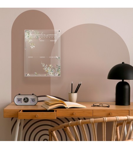 Bellos planificadores de metacrilato. Pensados y creados para que además de organizarte, puedas sentir confort mental y visual. Con el podrás planificar tu semana, repartir tareas en casa, tener a la vista la lista de la compra, o componer tu menú semanal.